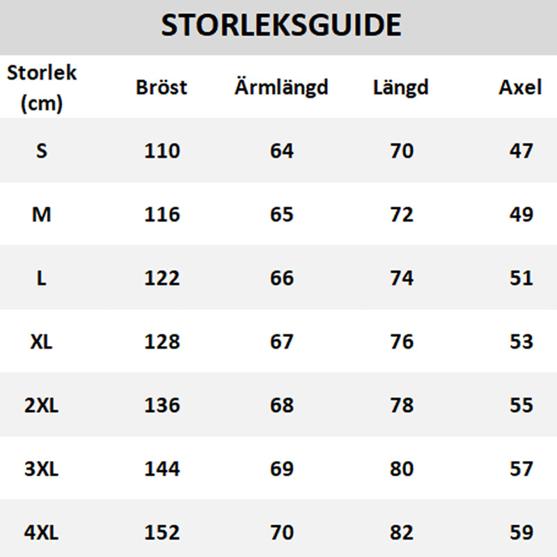Storlek: S, M, L, XL, 2XL, 3XL, 4XL